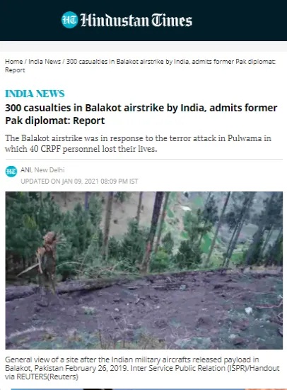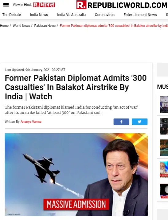 اسلام آباد (ایس ایم حسنین) بھارتی میڈیا نے ایک مرتبہ پھر صحافتی اصولوں اور قواعد وضوابط کی دھجیاں اڑاتے ہوئے بالاکوٹ حملے کے بارے میں سابق پاکستانی سفارتکار کی ویڈیو میں بدنیتی کے ساتھ ترامیم کر کے نشر کرنا شروع کردیا۔ بھارتی را کی اس سازش میں ہندوستانی ذرائع ابلاغ کے بڑے نام بھی حصہ بنے۔ جس میں سابق پاکستانی سفارتکار ظفر ہلالی کے پینل ڈسکشن کے کلپ اور ڈاکٹرڈ ویڈیو پر مبنی جعلی خبروں کو نشر کرنے اور شائع کرکے مضحکہ خیز دعوے کیے گئے۔جس میں یہ دعوی کیا گیا کہ انہوں نے بالاکوٹ کے حملے میں 300 ہلاکتوں کا اعتراف کیا ہے۔ سابق پاکستانی سفارتکار ظفر ہلالی کے ٹی وی نیوز مباحثے کی غلط تشہیر کرتے ہوئے بھارتی میڈیا کی خبروں میں کہا گیا ہے ، “ہندوستان نے بین الاقوامی سرحد عبور کی اور ایک ایسی جنگ کی جس میں کم از کم 300 افراد کی ہلاکت کی اطلاع ملی۔”