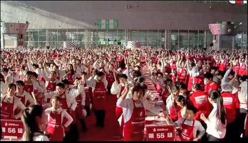 بیجنگ ……چین میں10ہزار افراد نے ایک جگہ جمع ہوکر سموسہ نما ڈمپلنگ بنایا اور گنیز بک آف ورلڈ ریکارڈ میں اپنا نام درج کروالیا۔یہ ریکارڈ بنانے کے لئے نوجوانوں سمیت بوڑھوں اور بچوں نے بھی بڑی تعداد میں شرکت کی۔ذرائع کے مطابق اس مقابلے کو منعقد کرنے کا مقصدچین کے روایتی ثقافت کوتر قی دینا تھا۔