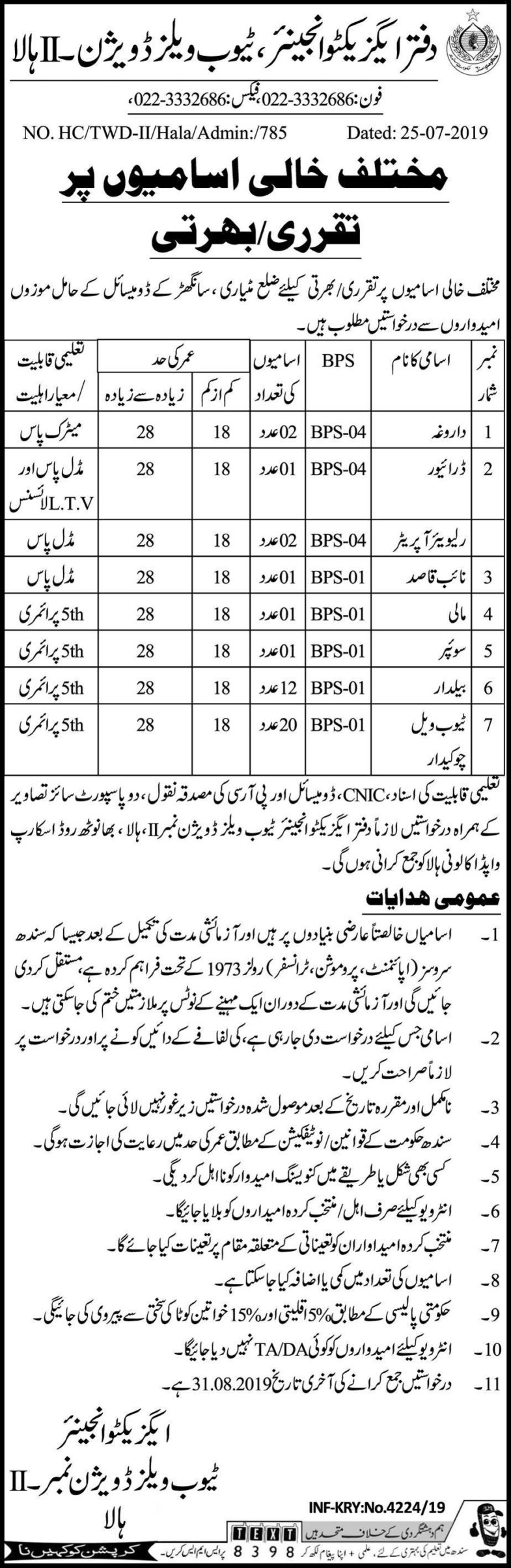 محکمہ آبپاشی سنڈھ (ہالہ / مٹیاری) 40+ معاون عملے کے لئے نوکریاں 2019۔
