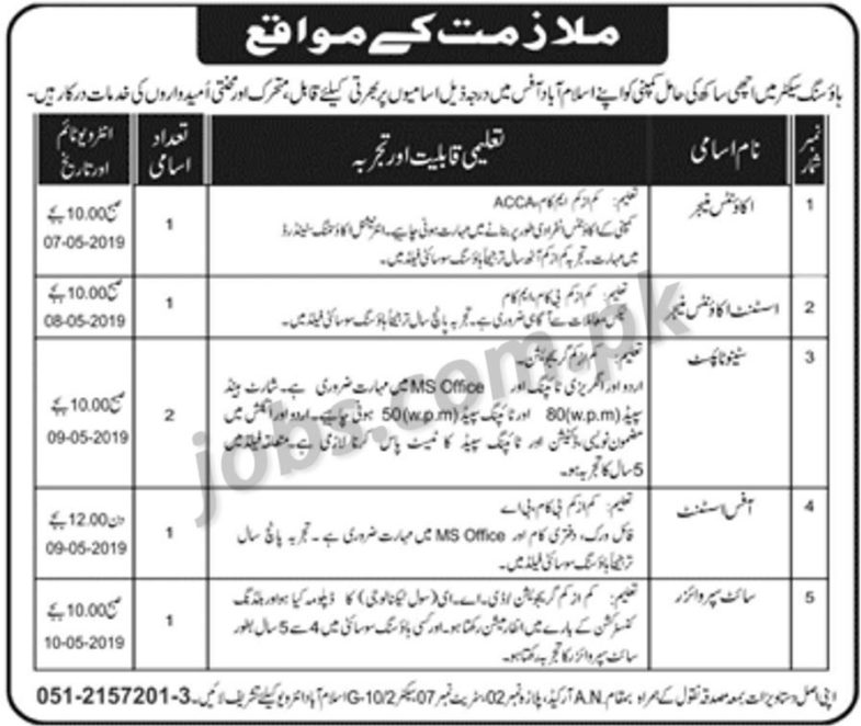 Islamabad Housing Sector Jobs 2019 for 6+ Stenotypists, Accounts Managers, Office Assistant and Supervisor Posts (Walk-in Interviews)