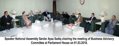 اسلام آباد(اصغر علی مبارک) قومی اسمبلی کی ہاؤس بزنس ایڈوائزی کمیٹی کا اجلاس سپیکر سردار ایاز صادق کی صدارت میں منعقد ہوا ۔ اجلاس میں قومی اسمبلی کے 53ویں اجلاس کو جاری رکھنے سے متعلق کمیٹی ممبران سے رائے لی گئی ۔ کمیٹی اجلاس میں فیصلہ کیا گیا قومی اسمبلی کے موجودہ اجلاس کو 2مارچ تک جاری رکھا جائے گا۔ اجلاس میں رانا تنویر حسین وفاقی وزیر برائے سائنس اینڈ ٹیکنالوجی اوردفاعی پیدوار ،چوہدری برجیس طاہر وفاقی وزیر برائے امور کشمیر اور گلگت بلتستان ، میا ں ریاض حسین پیر ذادہ وفاقی وزیر برائے بین الصوبائی رابطہ ،شیخ آفتاب احمد وفاقی وزیربرائے پارلیمانی امور، زہدحامدممبر، ،چوہدری محمد اشرف ممبر، سید نوید قمر ممبر، ڈاکٹر شیریں مہرالنساہ مزاری ممبر، ، غلام سرور خان ممبراورشیخ صلاح الدین ممبرنے شرکت کی۔