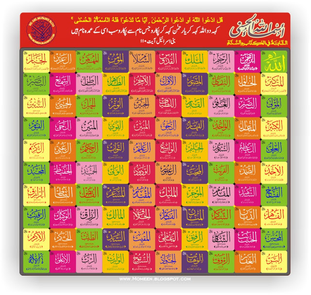 اسمائے حسنٰی کے بارے میں صحیح مسلم اور ترمذی میں لکھا ہے کہ اللّٰہ تعالیٰ کے 99 نام ہیں ، انہیں جو بھی حفظ کرکے دوہرائے گا ۔ اسے دنیا میں ہی نہیں آخرت میں بھی عزت بخشی جائے گی ۔ چونکہ اللّٰہ تعالیٰ کے ہر نام کی الگ خاصیت اور علیحدہ صفت ہے لہٰذا ان کے فوائد اور خواص بھی مختلف ہیں ۔