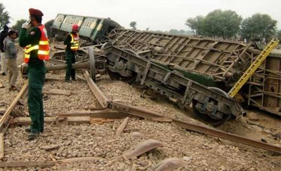 جیکب آباد کے علاقے نوارہ کے قریب ریلوے ٹریک پر دھماکے کے باعث خوشحال خان خٹک کی 4 بوگیاں پٹڑی سے اتر گئیں۔