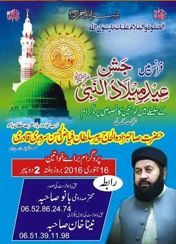 حضرت صاحبزادہ الحاج پیر سلطان فیاض الحسن سروری قادری زیب سجادہ دربار حضرت سلطان باہو سولہ جنوری بروز ہفتہ فرانس تشریف لا رہے ہیں