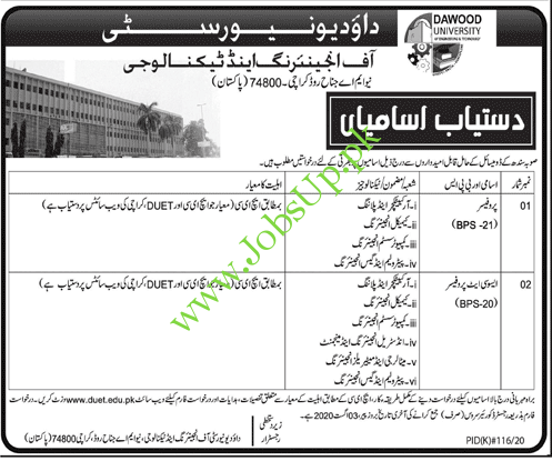 Jobs in Dawood University of Engineering and Technology Karachi – Latest Jobs 2020