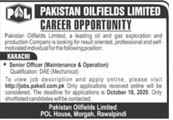 Pakistan Oilfields Limited has advertised vacancies as mentioned in below advertisement. The ad published in Jang.
