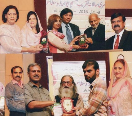 تقسیم ایوارڈ کے سلسلے کا آغاز ہوا تو سب سے پہلے اُردو و پنجابی کی معروف ادبی شخصیت محترمہ نزہت زہرا گردیزی(اسلام آباد) کو ادبی خدمات کے اعتراف میں ایوارڈ سے نواز گیا ۔ حسیب اعجاز عاشر(یو اے ای) کو سوشل میڈیا ایوارڈ، فروغِ سیاحت ایوارڈ سے مقصود چغتائی، ادب میں تحقیق ایوارڈ سے ڈاکٹر فہیم چستی الکاظمی(بہاولپور)، نعتیہ مجموعہ کلام”ورفعنا لک ذکرک” کی خالق بشری فرخ کو،شعری مجموعہ’ ‘خواب خواب زندگی” کی اشاعت پر فرزانہ فرحت(یو کے) کو، رابعہ بتول کو مجموعہ کلام”سحر تک دیپ جلنا” کی اشاعت پر اور احمد خیال کو دوسرے مجموعہ کلام”ستاروں سے بھرے باغات” کی اشاعت پر” نشانِ اعزاز ”سے نوازا گیا ۔ ڈاکٹر محمد آصف مغل اینڈ مسزلبنی آصف(میانوالی) ،مظہر جعفری اینڈ مسز شگفتہ غزل ہاشمی(لاہور) کو ”ادبی ستارے” ایوارڈز پیش کیے گئے۔