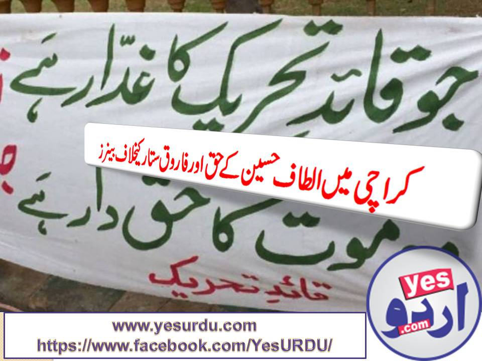 کراچی میں الطاف حسین کی حمایت اورفاروق ستار کے خلاف بینرز آویزاںشیئرٹویٹ