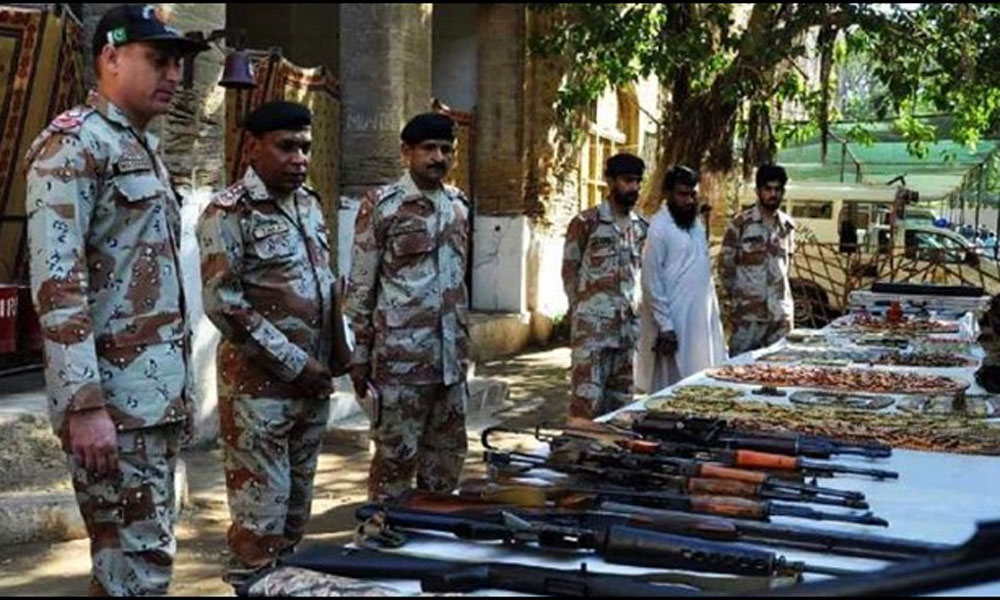 کراچی کے علاقے گولیمار میں رینجرز نے خفیہ اطلاع پر کارروائی کرتے ہوئے واجہ ولی محمد گوٹھ میں خالی پلاٹ پر چھاپہ مار کر زیر زمین چھپایا گیا اسلحہ اور ایمونیشن برآمد کر لیا۔