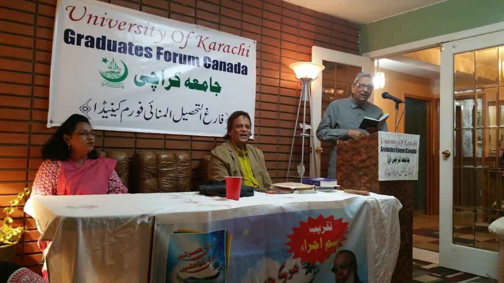 جرمنی (انجم بلوچستانی) ٹورنٹوبیورو اور کراچی یونیورسٹی گریجویٹس فورم کینیڈا کے ڈائیر یکٹر انفارمیشن نصیر الدین کی رپورٹ کے مطابق کراچی یونیورسٹی گریجویٹس فورم کینیڈا کی جانب سے پاکستان کے ممتاز سینئر شاعر اور ماہرِ تعلیم پروفیسر منظر ایوبی کے اعزاز میں ایک پروقار استقبالہ اور اعزازی مشاعرہ کا اہتمام کیا گیا،جوفورم کے ایگزیکٹیو ڈائریکٹر، ادبی اسکالر تسلیم الٰہی زلفی کی خصوصی دعوت پرپاکستان سے ٹورنٹو تشریف لائے تھے۔اس تقریب کا اہتمام تسلیم الٰہی زلفی کی قیام گاہ پرہوا،جس میں ٹورنٹو کے گردونواح میں آبادمعروف اردو اہلِ قلم اور باذوق خواتین و حضرات نے والہانہ شرکت کی۔
