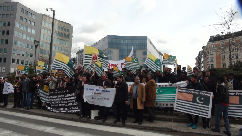کشمیر کونسل یورپ ( ای یو) کی طرف سے برسلزمیں30 مارچ بروزبدھ بھارتی وزیراعظم نریندرا مودی کی یورپی یونین کے ہیڈکوارٹر آمد پر احتجاجی مظاہرہ کیاگیا۔مظاہرے میں بڑی تعدادمیں لوگ شریک ہوئے جن میں اہم شخصیات اورسماجی اورانسانی حقوق کی تنظیموں کے نمائندے بھی شامل تھے۔مظاہرے کے اہتمام میں کشمیرکونسل یورپ کو ورلڈ کشمیردائس پورہ الائنس کنیڈا، کشمیرکمیٹی سویڈن، کشمیریورپین الائنس ناروے، فری کشمیرآرگنائزیشن جرمنی، کشمیرسنٹر ہالینڈ، انٹرنیشنل کونسل فارہومن ڈی ویلپمنٹ ، کشمیرانفو، جے کے ایل یف بلجیم ودیگرتنظیموں کا تعاون حاصل تھا۔مظاہرین نے پلے کارڈزاوربینرزاٹھارکھے تھے جن پر مودی کی ظالمانہ پالیسیوں کے خلاف نعرے درج تھے۔بعض پلے کارڈز پر ’’مودی قاتل، مودی دہشت گرد اور مودی فاشسٹ کے الفاظ بھی تحریرتھے۔ مظاہرین نے مودی کے کے خلاف نعرے بھی لگائے ۔