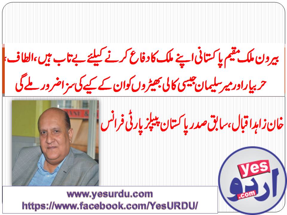 فرانس (نمائندہ یس نیوز)جناب خان زاہد اقبال سابق صدر پاکستان پیپلزپارٹی فرانس نے کہا ہے کہ حربیار مری اور میر سلیما دائود اور الطاف حسین جیسی کالی بھیٹروں کو اپنے کیے کی سزا ضرور ملے گی۔ پاکستان رب تعالیٰ کا زندہ معجزہ ہے اس کی مخالفت کرنے والے اللہ کے عذاب کو دعوت دے رہے ہیں۔