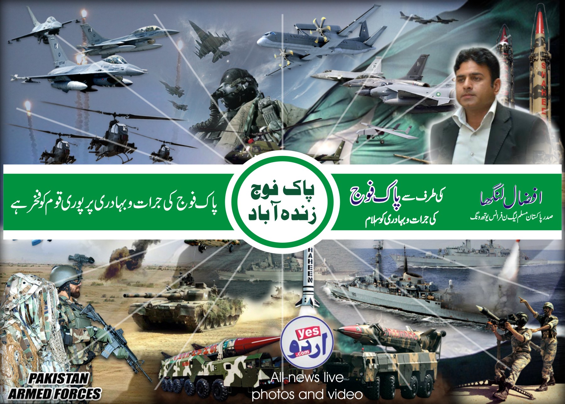 افضال لنگھا صدر پاکستان مسلم لیگ ن فرانس یوتھ ونگ کی طرف سے پاک فوج کی جرات و بہادری کو سلام کا اشتہار۔