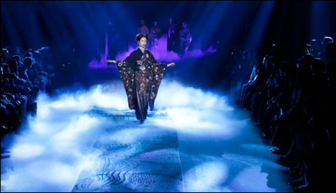 دارلحکومت ٹوکیو میںفیشن ویک شروع ہوا توجدید ڈیزائنز کےکیمونو میں ملبوس ماڈلزکبھی شاندار شال،کولر والی جیکٹس اورکمبل نما چادرکاندھوں پر ڈالے ریمپ پرنظر آئیں ۔یہ کرشمہ ہے مشہور جاپانی ڈیزائنر جوتارو سیتو کاجو اپنے کام کا جادو جگاکر روایتی لباس کوجدیدفیشن میں ڈھالنے کا فن خوب جانتاہے۔کیمونو کے نت نئےانداز میں ملبوس ،کالے اور سفید ڈیزائن کے قالین پرٹہلتی، ماڈلز حاضرین کی توجہ کا مرکز بنیں۔