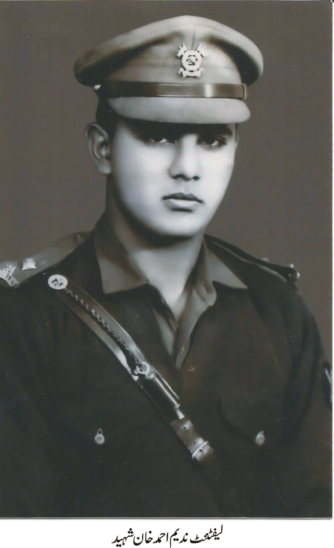 10ستمبر کی صبح فرض کی ادائیگی اور شوق شہادت میں سرشار دشمن کے علاقے میں اسکی فوجوں کے قلب میں پہنچ گئے اور دشمن کی گولی لگنے سے شہادت پائی، شکست کھا کر بھاگتا ہوا دشمن آپ کا جسد خاکی بھی اٹھا کر ساتھ لے گیا، جسے انڈیا میں اس کی بہادری و جرات مندی کی وجہ سے پورے فوجی اعزاز کے ساتھ دفن کیا گیا، جنگ بندی کے بعد 23فروری 1966کواس قابل فخر اور نا قابل تسخیر شہید کا جسم مبارک کو بھارت سے لاہور لایا گیا اور پورے فوجی اعزاز کے ساتھ قبرستان شہیدان میں دفن کیا گیا،ان کی یاد گار شامی مینار مصطفی آباد میں بنائی گئی، ان شہدا میں دوسرا بڑا نام لیفٹننٹ ندیم احمد خان شہیدہے جن نے 10ستمبر کو کھیم کرن کے محاذ پر مادر وطن کی حفاظت کرتے ہوئے جام شہادت نوش کیا۔