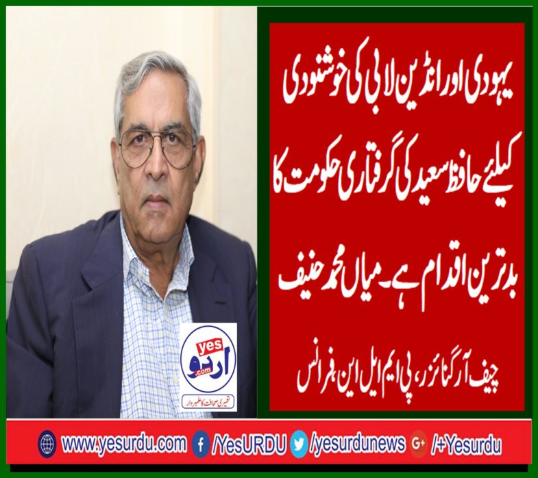 یہودی اورانڈین لابی کی خوشنودی کیلئے حافظ سعید کی گرفتاری بدترین ہے، میاں محمد حنیف