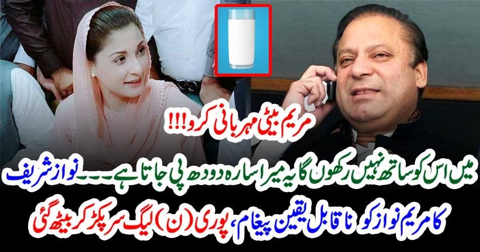 مریم بیٹی مہربانی کرو!!!میں اس کو ساتھ نہیں رکھوں گا یہ میرا سارہ دودھ پی جاتا ہے ۔۔۔نواز شریف کا مریم نواز کو ناقابل یقین پیغام ، پوری (ن)لیگ سر پکڑ کر بیٹھ گئی