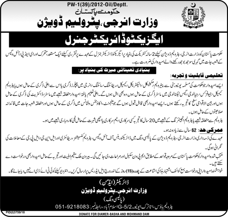 Ministry of Energy Pakistan Jobs 2019 for Executive Director General14 February, 2019 Post Views - پوسٹ کو دیکھا گیا: 35