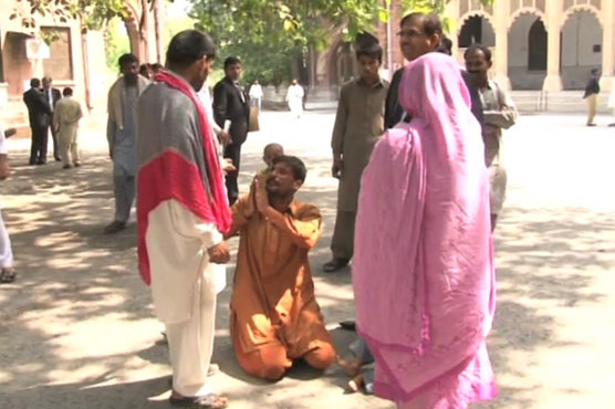 لاہور (یس اُردو ) بیوی کے ساتھ معمولی معمولی بات پر جھگڑا کرنے والا شوہر احاطہ عدالت میں بیوی کے پاؤں پڑگیا ، ہاتھ جوڑ جوڑ کر معافی مانگنےلگا ، بیوی پر تشدد اور بات بات پر جھگڑا کرنے والے شوہر اصغر علی کو اپنی غلطیوں کا احساس اس وقت ہوا جب حافظ آباد کی فرح نے دونوں بچوں کی حوالگی کےلیے کیس دائر کیا اور شوہر کی طلبی ہوئی ۔ جسٹس شہرام سرورچوہدری نے میاں بیوی کو ایک گھنٹے تک صلح کے لیے مہلت دی تو بس اصغرکی جان میں جان آگئی اور پھر کمرہ ء عدالت موقع غنیمت جانتے ہوئے بیوی اور سسر کے پائوں پڑ گیا ۔ اصغر نے بیوی کے سامنے ہاتھ جوڑے ، التجائیں کیں لیکن فرح بی بی اپنے ساتھ ہونے والے ظلم کو دہراتی رہی اور کہا کہ یہ شوہر کے ڈرامے ہیں گھر جا کر پھر تشدد کرے گا ۔ میاں بیوی کی صلح کروانے کے لیے فریقین کے وکلا بھی اپنا کردار ادا کر رہے ہیں جس کے بعد عدالت کیس کا حتمی فیصلے کرے گی ۔