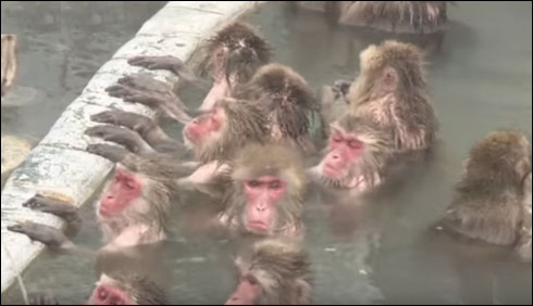 یقین نہ آئے تو ان بندروں کو ہی دیکھ لیجئے جنہیں برفباری کے موسم میں سردی نے ستا یا تو یہ گرم پانی کے قدرتی چشمے میں نہانے کیلئے کود پڑے۔گرم پانی جسم پر پڑتے ہی بندروں نے سکھ کا سانس لیا اور کئی گھنٹوں تک چشمے میں اطمینان کے ساتھ گرم حمام کا مزہ لیتے رہے۔بندروں کو گرم پانی کے چشمے پر دیکھ کر یہاں آنے والے سیاح بھی کچھ دیر کیلئے رک جاتے ہیں اور اس منظر سے خوب لطف اندوز ہوتے ہیں۔