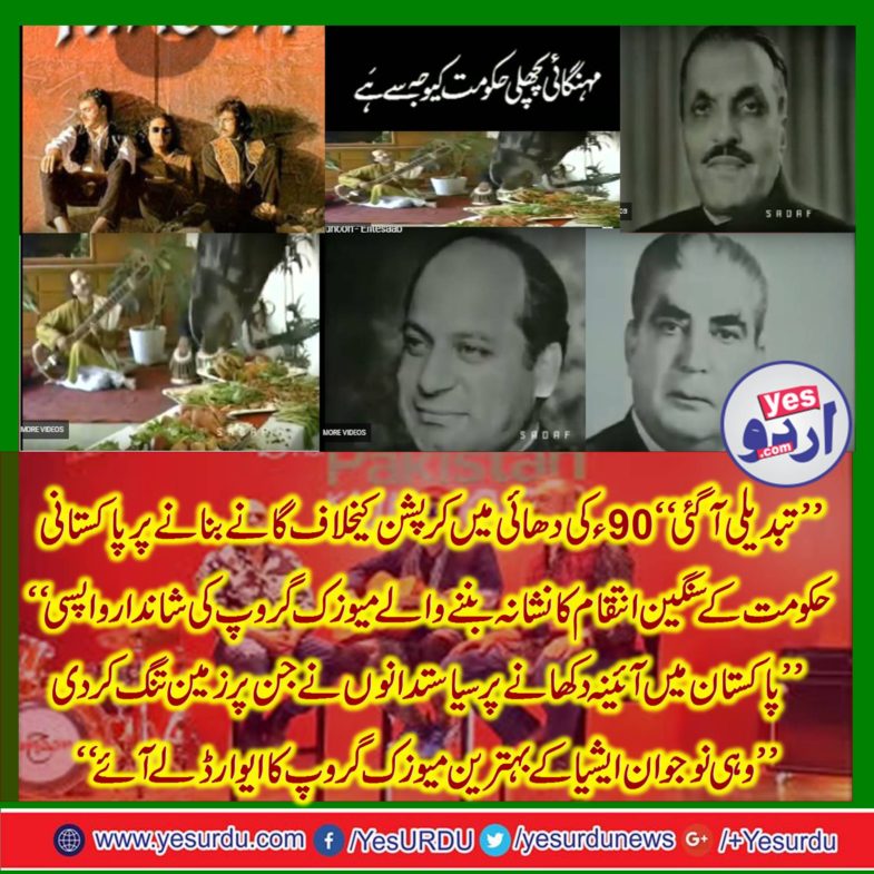 کے ٹائٹل کے ساتھ آرہی ہے جس کا شائقین نے خیر مقدم کیا ہے اور امید ہے یہ میوزک گروپ اپنی اصل صلاحیتیں اب کی بار دکھا پاءے گا اور تبدیلی کی حکومت اس گروپ کی صلاحیتوں پر کیوءی قدغن لگانے کے بجاءے ایسے نوجوانوں کو سپورٹ کریگی۔