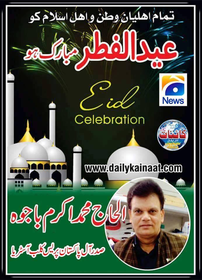 ویانا : تمام مسلمانوں کو عید الفطر کی خوشیاں مبارک ہوں، اکرم باجوہ۔