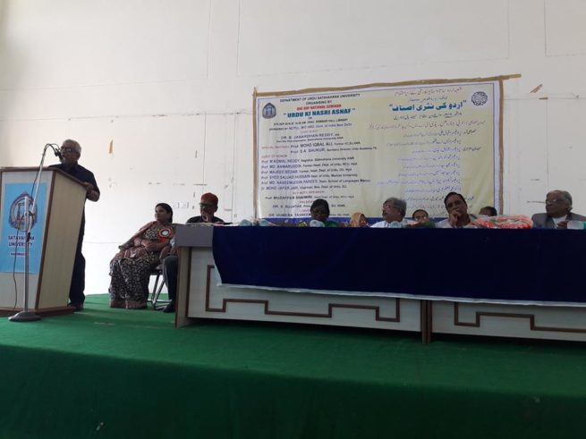 شعبہ اردو شاتاواہنا یونیورسٹی کے زیر اہتمام ماضی میں دو قومی اردو سمینار بعنوان” اردو کا سفر” اور ” اردو شاعری ” کامیابی سے منعقد کئے گئے تھے۔ قومی کونسل برائے فروغ اردو زبان دہلی کے مالی تعاون سے شعبہ اردو شاتاواہنا یونیورسٹی نے 8ستمبر کو اپنا تیسرا قومی اردو سمینار بعنوان” اردو کی نثری اصناف” مقرر کیا۔ شعبہ اردو کے تحت منعقدہ سمیناروں کے موضوعات سے اندازہ ہوتا ہے کہ طلبا کے استفادے کے پیش نظر نصابی ضروریات کی تکمیل کرتے موضوعات سمینار کے لئے طے کئے گئے۔