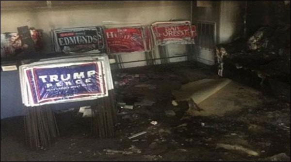 امریکی ریاست نارتھ کیرولائنامیں ریپبلکن پارٹی کے ہیڈکوارٹر پر حملہ کیا گیا جس کے بعد دفترمیں آگ لگ گئی مگر خوش قسمتی سے کوئی جانی نقصان نہیں ہوا۔ہیلری نے حملے کو ہولناک قرار دے دیا۔