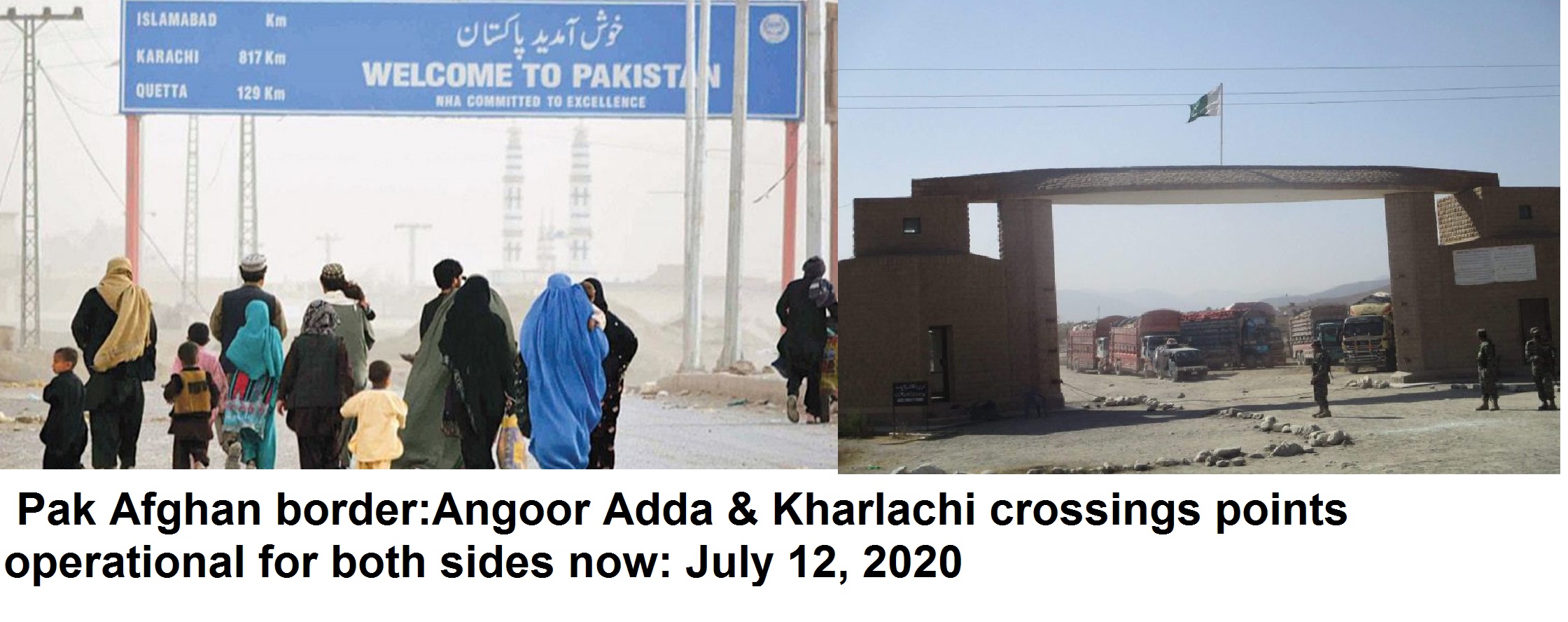 Pak Afghan borders, Angoor Adda and Kharlachi crossings points operational for two way traffic. July 12 2020