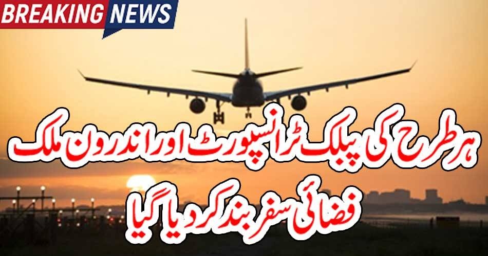 پبلک ٹرانسپورٹ اور اندرون ملک فضائی سفر بند کر دیا گیا