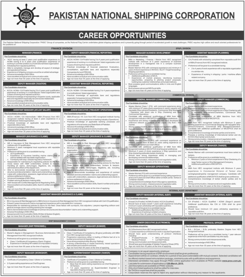 Pakistan National Shipping Corporation (PNSC) Jobs 2019 – Apply Online: