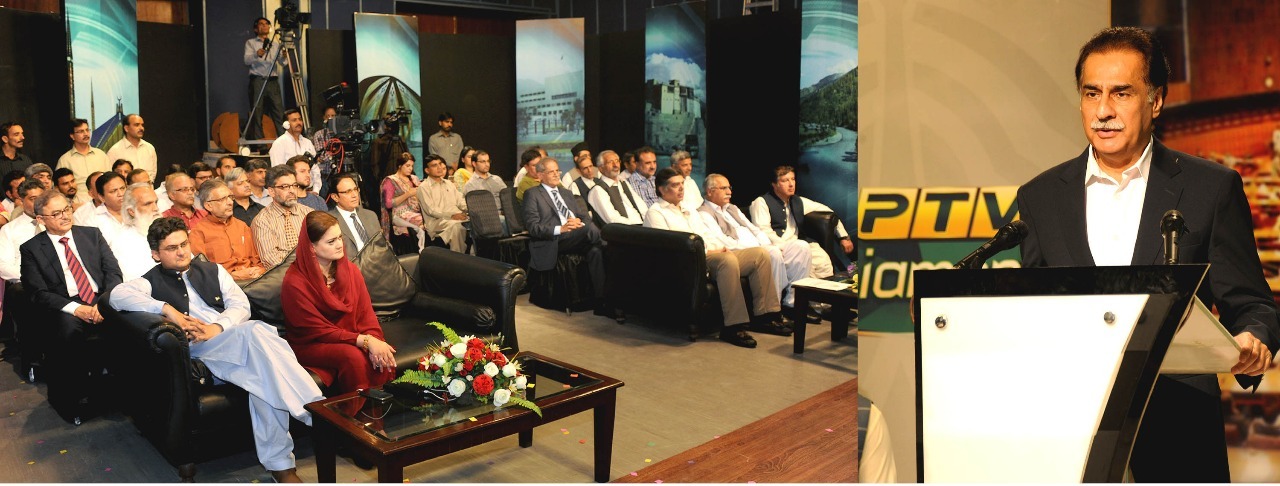 Pakistan television begins new broadcasting channel PTV Parliamentاسلام آباد: (اصغر علی مبارک) پاکستان ٹیلی ویژن نے بدھ کو اپنے نئے چینل پی ٹی وی پارلیمنٹ کی نشریات کاآغاز کیا ہے۔ قومی اسمبلی کے سپیکر سردار ایاز صادق نے ایک تقریب میں بٹن دبا کر چینل کی آزمائشی نشریات کا افتتاح کیا۔ اس موقع پر اظہار خیال کرتے ہوئے انہوں نے کہا کہ ہم نے پارلیمان کی کارروائی سے متعلق عوام میں آگاہی پیدا کرنے کے لئے ہر ایک کے لئے پارلیمنٹ کے دروازے کھول دئیے ہیں۔ انہوں نے کہا کہ اس چینل کے ذریعے عوام یہ دیکھیں گے کہ ان کے منتخب نمائندے ان کے مسائل اجاگر کررہے ہیں یا نہیں۔ اطلاعات و نشریات کی وفاقی وزیر مریم اور نگزیب نے اپنے کلمات میں کہا کہ نیا چینل پارلیمنٹ سمیت قائمہ کمیٹیوں کی کارروائی نشر کرے گا۔