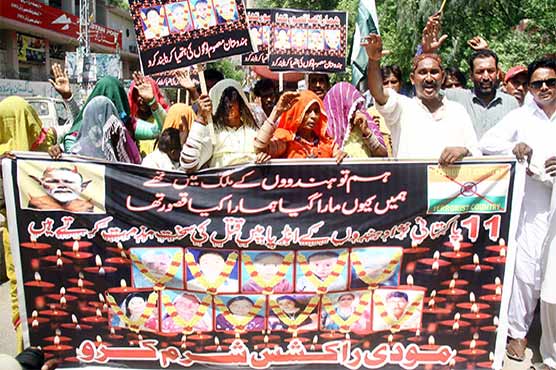 پاکستان کے شہریوں کا ناحق خون ہندوستان میں بہا، بھارت اس کا جواب دے،ہندوستان میں مودی نے جس طرح فاشسٹ حکومت میں تبدیل کیا پاکستان سمیت تمام ہمسائے اس کا شکار ہیں،چین، بنگلہ دیش، نیپال، پاکستان ، مودی کے ہندوستان کی شیطانیوں سے متاثر ہیں،پاکستان کی ہندو برادری، بھیل برادری کیساتھ کھڑے ہیں۔ بھارت میں قتل کیے جانے والے11 پاکستانی ہندوؤں کے حوالے سے پاکستان میں مقیم ہندو برادری کی جانب سے نکالی جانے والی احتجاجی ریلی ملک کے مختلف حصوں سے گزرتی ہوئی اسلام آباد پہنچ گئی ہے۔ انہوں نے بھارتی وزیرِ اعظم نریندر مودی کی جانب سے کشمیریوں کے خلا ف کیے جانے والے مظالم پر بھی بھارتی حکومت پر شدید تنقید کی۔ ریلی کے شرکاء نے بھارتی وزیرِ اعظم نریندر مودی اور بھارتی حکومت کے خلاف شدید نعرے بازی کی۔ واضح رہے کہ گزشتہ ماہ بھارتی شہر جودھ پورمیں پاکستان سے ہجرت کرنے والے خاندان کو قتل کردیا گیا تھا ، جس کے حوالے سے تفصیلات تاحال جاری نہیں کی گئیں۔ واضح رہے کہ 9 اگست کو بھارت میں 11 پاکستانی ہندو پراسرار طور پر ہلاک ہوئے تھے۔ بھارتی میڈیا نے کہا تھا کہ پاکستان سے جانے والے ہندو راجستھان کے ضلع جودھپور میں رہائش پذیر تھے، جاں بحق ہونے والوں پورے خاندان کا صرف ایک فرد ہی زندہ بچا تھا۔ ضلع سانگھڑ کی تحصیل شہداد پور کے گاؤں بھادر فقیر کلوئی کے رہائشیوں کے 11 افراد کو بھارت کے شہر جودھپور راجستھان کے گاؤں لوٹا میں آر ایس ایس اور بی جے پی کے غنڈوں نے پولیس کی سرپرستی می ں19 اگست2020 رات کو تین بجے گھر میں گھس کر زہریلے انجکشن لگاکر قتل کردیا ہے اس طرح کی تفصیل شہداد ہور تھانے میں مقدمہ درج کراتے ھوئے شریمیتی مکھی بھیل نے بتائی ھے مکھی بھیل نے بتایا کہ 2012 میں اسکا والد والدہ اور دیگر گیارہ افراد روزگار کے سلسلے میں بھارت چلے گئے تھے جنھیں گزشتہ روز بھارت کی دہشت گرد تنظیم آر ایس ایس اور بی جے پی کے غنڈوں نے رات تین بجے پولیس کی سرپرستی میں گاؤں میں داخل ھوکر زہریلے انجیکشن لگاکر قتل کردیا ھے اور اب ہمیں اور ہمارے رشتے داروں کو فون پر دہمکیاں دی جارہی ہیں کہ کسی کو کچھ نہیں بتانا ورنہ بھارت میں تمام خاندان کو قتل کردینگے