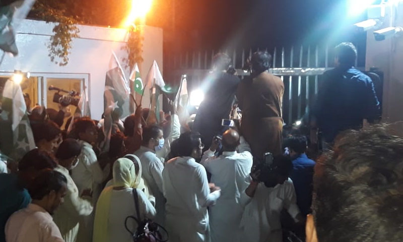 پاکستان ہندو کونسل کے مظاہرین کی بڑی تعداد خار دار تاریں عبور کرتے ہوئے ڈپلومیٹک انکلیو میں داخل ہوگئی اور بھارتی ہائی کمیشن کے باہر احتجاج کیا۔ مظاہرین نے بھارتی ہائی کمیشن کے باہر شدید نعرے بازی کی۔