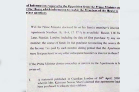 پاناما لیکس :اپوزیشن نے وزیر اعظم کیلئے 5 سوالات تیار کر لئے