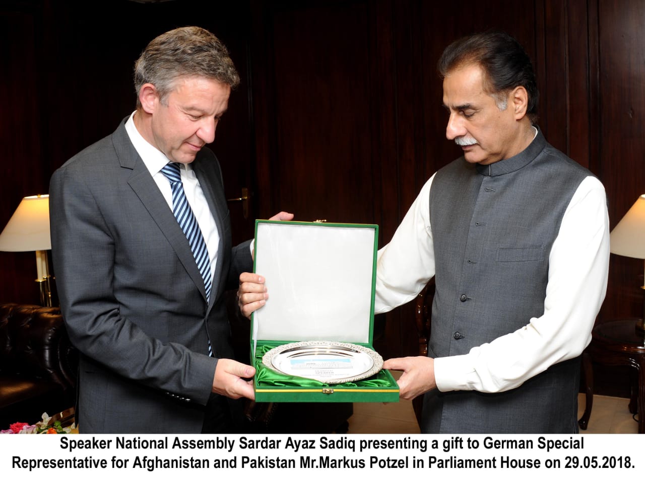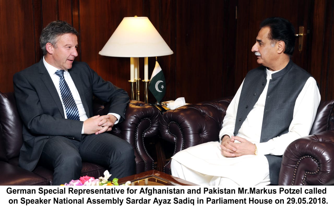 افغانستان پاکستان کے لیے جرمنی کے خصوصی نمائندے مسٹر مارکوز پوٹزیل نے سپیکر کے تاثرات کو سر اہاتے ہوئے کہا کہ ان کی حکومت بھی پاکستان کے ساتھ اپنے تعلقات کو بڑی اہمیت دیتی ہے اور مختلف شعبوں میں تعاون کو فروغ دے کر موجودہ تعلقات کو مزید وسعت دیتا چاہتی ہے ۔انہوں نے اس بات سے اتفاق کیا کہ دونوں ممالک کی تجارتی برادری اور ارکان پارلیمنٹ کے مابین مسلسل رابطے دونوں ممالک کے لیے سود مند ثابت ہو نگے۔