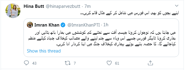 Hina Prervez But from PMLN replied to PM’s tweet for Imran Khan’s sons to get inducted for Tiger Force