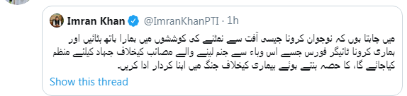 Imran Khan Tweet for Corona Fund and Tiger Force