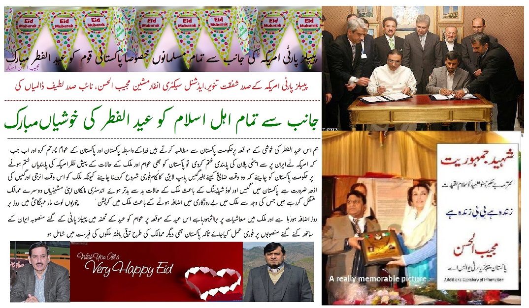 امریکہ (مجیب الحسن) دعا ہے اللہ رب العزت پاکستان میں ہر مسلمان کیلئے سکھ، چین، اطمینان اور کامیابی بھائی چارہ کا دور ہو تمام سیاست دان آپس میں بھائی چارگی محبت اور نیک نیتی سے اپنے ملک کو ترقی اور عوام کی خوشحالی کیطرف گامزن کریں عید کی نماز میں اپنے ملک کیلئے دعا کرنا نہ بھولیں، شکریہ۔