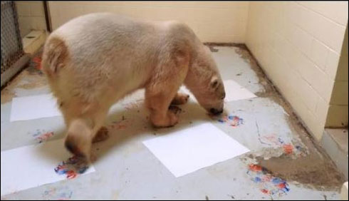 اونٹاریو……کینیڈا کے صوبے اونٹاریو میں ایک برفانی ریچھ نے اپنے پاؤں کے ذریعے پینٹنگ کرکے ایسے منفرد شاہکار بنائے کہ دیکھنے والے داد دئیے بنا نہ رہ سکے۔