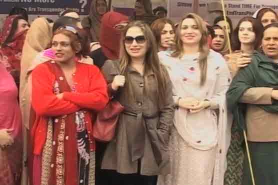 پشاور: خواجہ سراوں کا اپنے حقوق کیلئے پریس کلب کے سامنے دھرنا