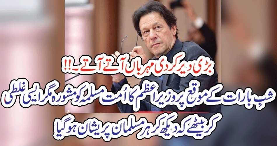 بڑی دیر کردی مہرباں آتے آتے۔!! شبِ بارات کے موقع پر وزیراعظم کا اُمت مسلمہ کو مشورہ مگر ایسی غلطی کربیٹھے کہ دیکھ کر ہر مسلمان پریشان ہوگیا