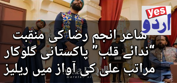 اسلام آباد (اصغر علی مبارک)لندن میں مقیم معروف پاکستانی شاعر انجم رضا کی دلنشین منقبت “ندائے قلب” پاکستان کے مشہور گلوکار مراتب علی کی آواز میں ریلیز کر دی گئی ہے۔ اس خوبصورت پیشکش کی ویڈیو یوٹیوب پر کامیابی کے ساتھ دیکھی اور سنی جا رہی ہے، جہاں اسے سامعین کی جانب سے بھرپور پذیرائی حاصل ہو رہی ہے۔