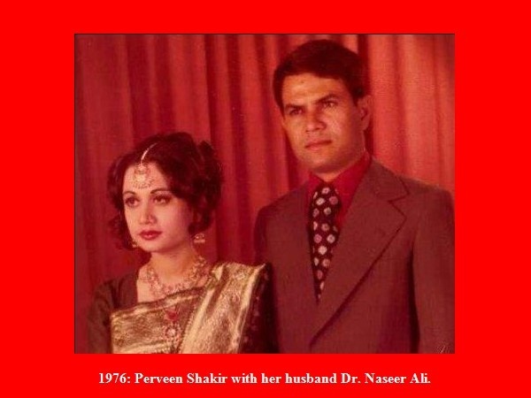 پروین شاکر کی شادی 1976 ء میں ڈاکٹر نصیر علی سے ہوئی جو رشتے میں ان کا خالہ زاد تھا اور ملٹری میں ڈاکٹر تھا۔1978 ء میں اللہ نے ان کو ایک خوبصور ت بیٹے سے نوازا جس کا نام مراد علی رکھا گیا ۔ پر وین نے بہت سی شاعری اپنے بیٹے کے لیے بھی کی ہے ۔ وہ اپنے بیٹے سے بہت محبت کرتی تھیں ۔