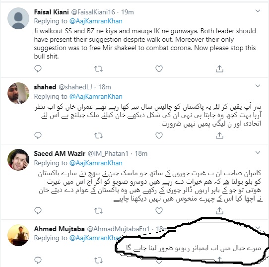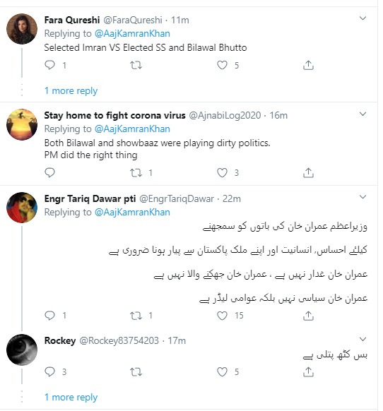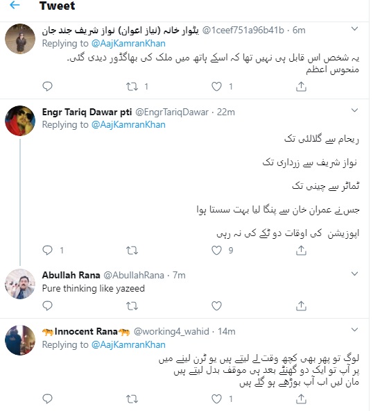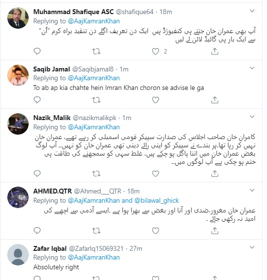 سینئر اینکر پرسن اورتجزیہ نگار کامران خان نے اپنے پروگرام میں وزیراعظم کی اس غرور سے لبریز غلطی کو تاریخ میں اہم قرار دے دیا ان کے اس پروگرام پر سوشل میڈیا پر بہت سے کمنٹس کیے گئے جس میں ایک صارف کا کہنا تھا کہ شاید اب امپائر ریویو لینا بھی چاہے گا۔