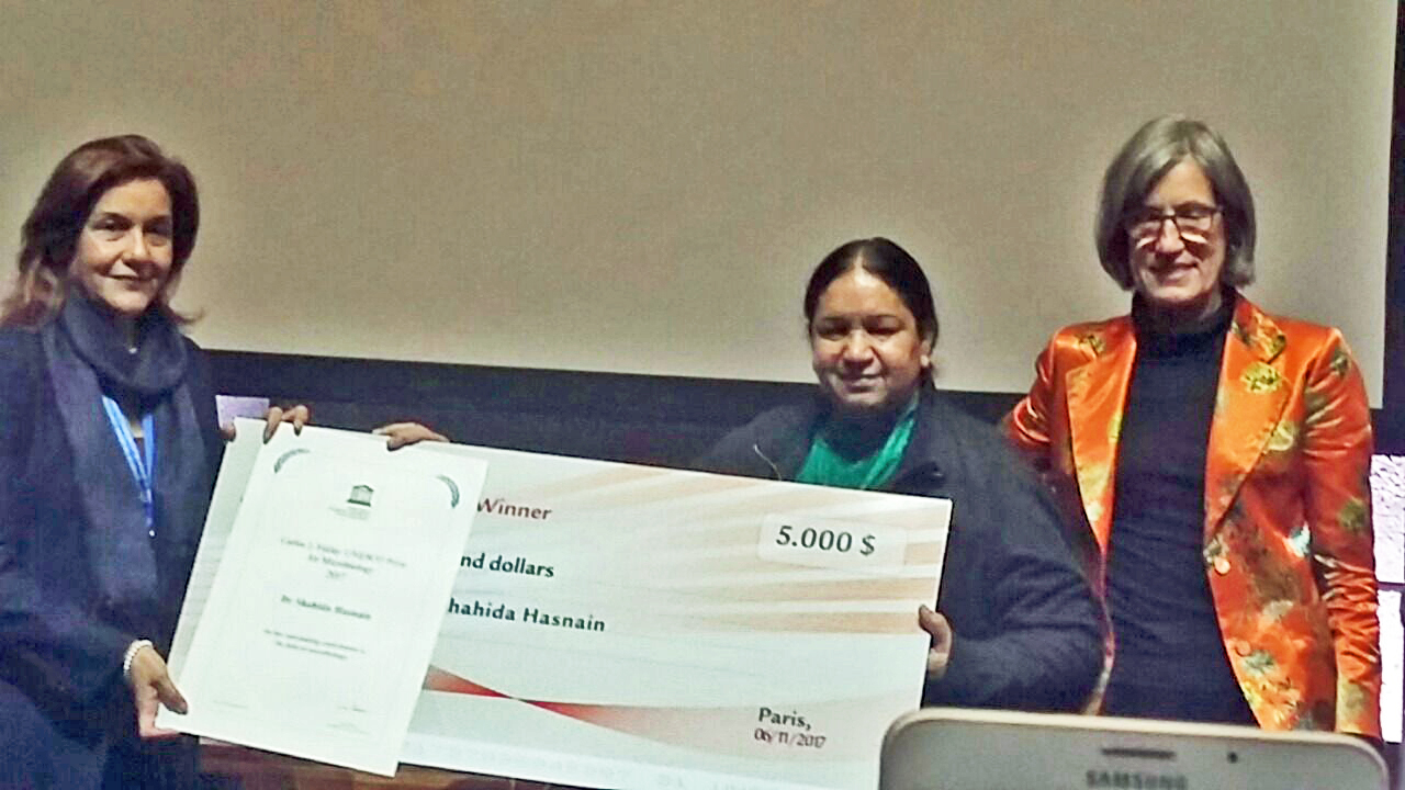 پروفیسر شاہدہ حسنین کو یہ انعام کیوبا کی وزیر برائے تعلیم محترمہ اینا ایلسا ولیزقویز کوبیلا اور یونیسکو کے ڈپٹی ڈائریکٹر جنرل محترم جیتاشیو اینجیدا نے یونیسکو کے جنرل کانفرنس کی تقریب ایوارڈ کے موقع پر دیاجو گزشتہ روز یونیسکوہیڈکوارٹر پیرس میں منعقد ہوا۔