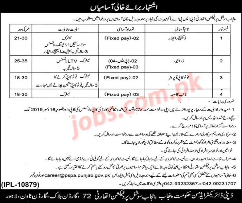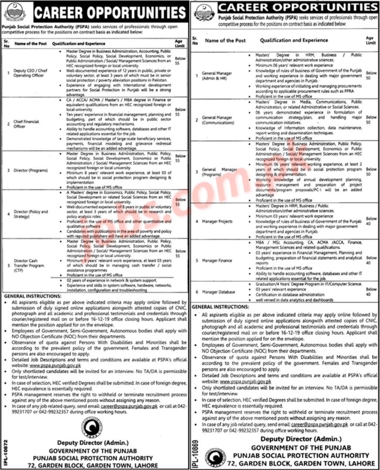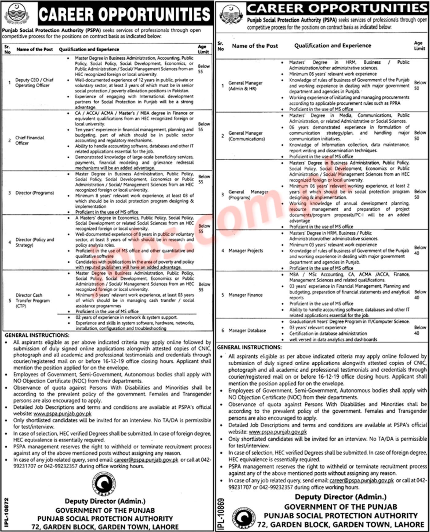 Punjab Social Protection Authority Jobs 2019 for 23+ Managers, General Managers, Directors & Other