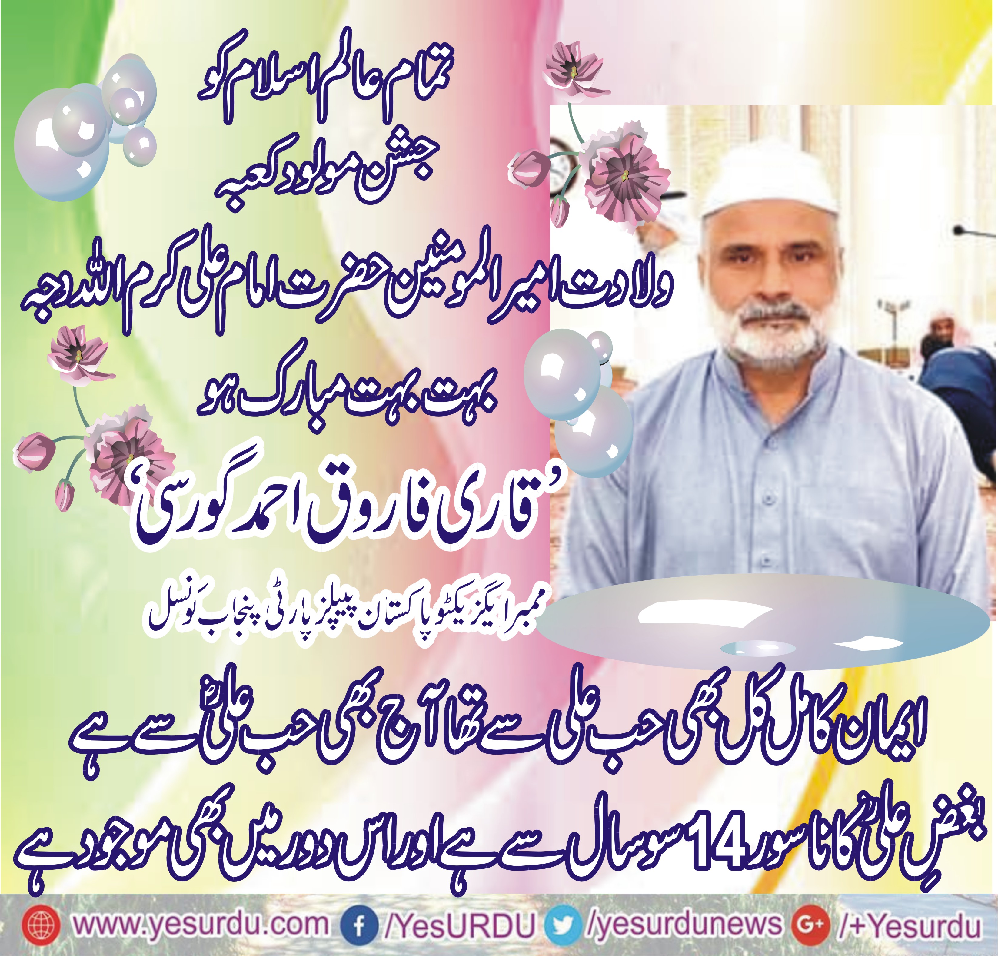 تمام عالم اسلام کو حضرت علی رضی اللہ عنہ کا یوم ولادت باسعادت بہت بہت مبارک ہو، قاری فاروق احمد گورسی