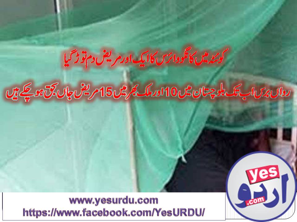 Quetta Congo affected another patient died total 10 Patient in Baluchistan and 15 patient died in whole country