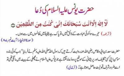حضرت یونس ؑ مچھلی کے پیٹ میں تھے تو مایوس نہیں تھے اپنے ربّ کی قدرت پر یقین تھا مچھلی کے پیٹ میں انہیں دعا سکھائی گئی کہ کیسے اللہ پاک ان پر مہربانی کر سکتا ہے اور پھر دعا کی کثرت اور اللہ پر ایمان نے انہیں مچھلی کے پیٹ سے نجات دی٬ وہ دعا آج بھی مسلمان کسی بھی پریشانی کی صورت پڑھتے ہیں٬ یہ دعا بھی قرآن پاک میں موجود ہے٬۔